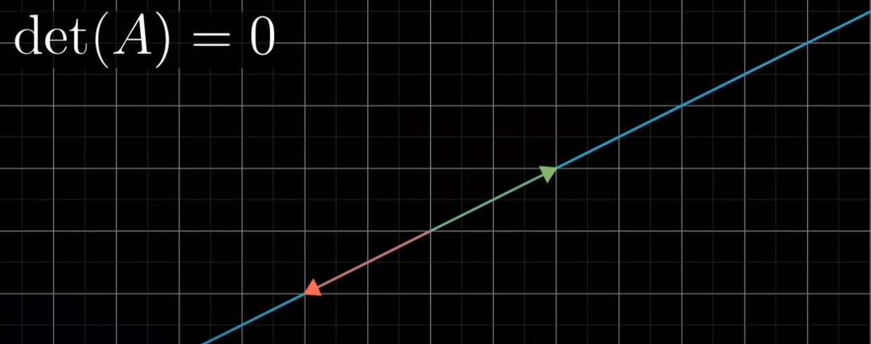 determinant의 값은 영역의 넓이라고 표현했었다. 2차원 상에 존재하는 두 벡터가 있다고 가정할 때 det()=0인 경우는 다음과 같다.